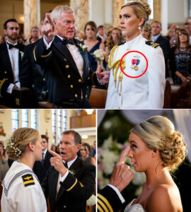 I was waiting just behind the chapel doors, white dress uniform pressed razor-sharp, four silver stars on my shoulders, gold buttons catching colored light from the stained glass. My gloves were spotless. My hands weren’t steady.