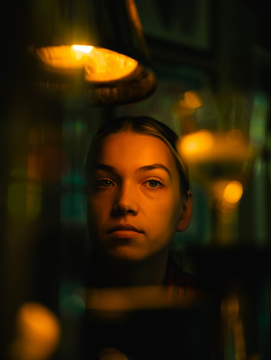 Her plate of fries sat untouched, salt already melting into the paper liner. In front of her was a glass of water with a slice of lemon floating like an afterthought.