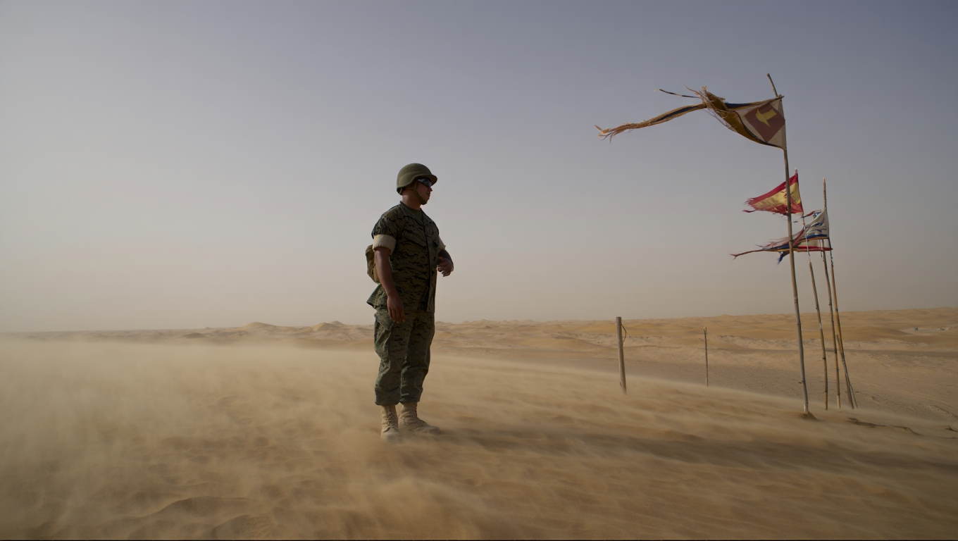 The wind whipped across the open desert like a warning. Dust curled in spirals around the boots of the assembled Marines standing at rigid attention. The flags snapped sharply in the morning cold.