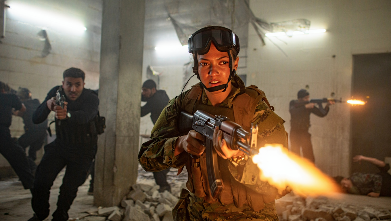 She exploded from cover, tackling the nearest one. A knife from his belt found its way into his throat. The last two fired, but she was a ghost—dodging, weaving, her training turning the confined space into her arena.