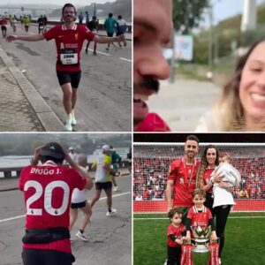 In a moment that transcended sport and touched the soul of football fandom worldwide, Rute Cardoso, the wife of Liverpool forward Diogo Jota, shared a tearful embrace with a close friend of the late player who crossed the Porto Marathon finish line on November 3, 2025, wearing Jota’s iconic No. 20 jersey, turning the event into a poignant tribute that silenced the crowd before erupting in thunderous emotion and tears. The runner, identified as lifelong friend and fellow Portuguese athlete Miguel Silva, 32, completed the 42-kilometer race in 3 hours 12 minutes, collapsing into Cardoso’s arms as she whispered through sobs, “He’d be so proud,” a scene captured on video that has amassed 8.5 million views on social media, reigniting grief and celebration for Jota’s legacy just four months after his tragic passing.