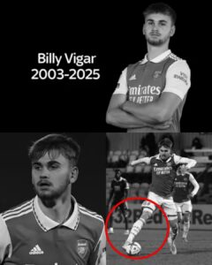Billy Vigar, the promising 21-year-old striker who dazzled Arsenal’s academy with his “quick, powerful, and fiercely determined” flair, has tragically passed away after sustaining a “significant brain injury” during a non-league match on September 21, 2025, plunging the football community into profound grief and igniting urgent calls for safety reforms. Chichester City FC, the seventh-tier Isthmian League side Vigar joined in August 2025, confirmed the heartbreaking news on September 25, revealing that the former Gunners youth product was injured in a collision with a concrete wall while chasing a ball out of bounds during their fixture against Wingate & Finchley – a game abandoned after just 13 minutes.