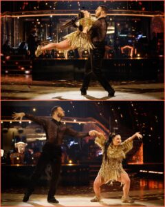 The performance, set to a pulsating rendition of “Smooth Criminal,” was a whirlwind of passion and precision. Vito, the Italian pro dancer known for his fluid style and infectious enthusiasm, crafted a routine that celebrated Ellie’s strengths while embracing her unique flair. Dressed in a fiery red gown that swirled like flames, Ellie commanded the floor with confident spins and dramatic poses, her smile radiating pure delight. Vito lifted her effortlessly, their chemistry electric—a partnership built on trust and mutual respect that transcended technical perfection.