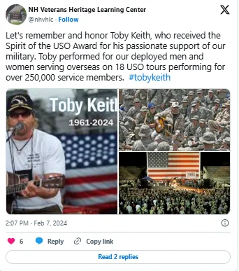 In 2014, the USO honored Keith with the Spirit of the USO Award, praising him as one of their most dedicated and consistent supporters. But the true tribute came from the countless letters, photos, and stories shared by troops who said his music gave them strength, reminded them of home, and made the hardest days a little easier.
