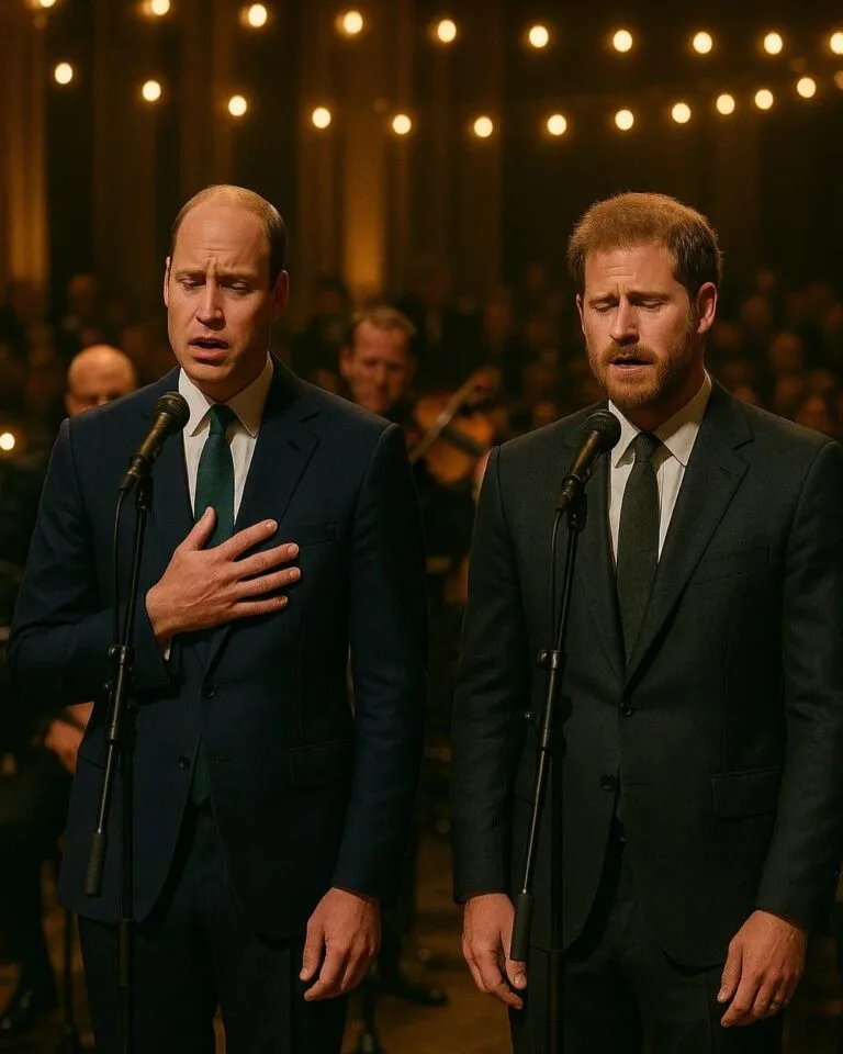 The brothers performed a reimagined version of Ed Sheeran’s Supermarket Flowers, rewritten with fragments from their childhood memories, personal letters, and grief that never quite healed. Images of Diana projected softly behind them—walking through landmine fields, holding children close, comforting AIDS patients, laughing with boys who never knew how much those moments would come to mean.