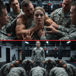 Lyra maintained astonishing composure. She didn’t struggle as Jake used his other hand to violently squeeze her throat. The nine other soldiers simultaneously reached out, gripping her neck and shoulders, making Lyra a victim completely restrained by 10 of the strongest men in the military.