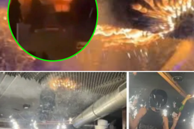 Shocking footage shows terrified partygoers running out of the bar as its dancefloor is engulfed in flames.