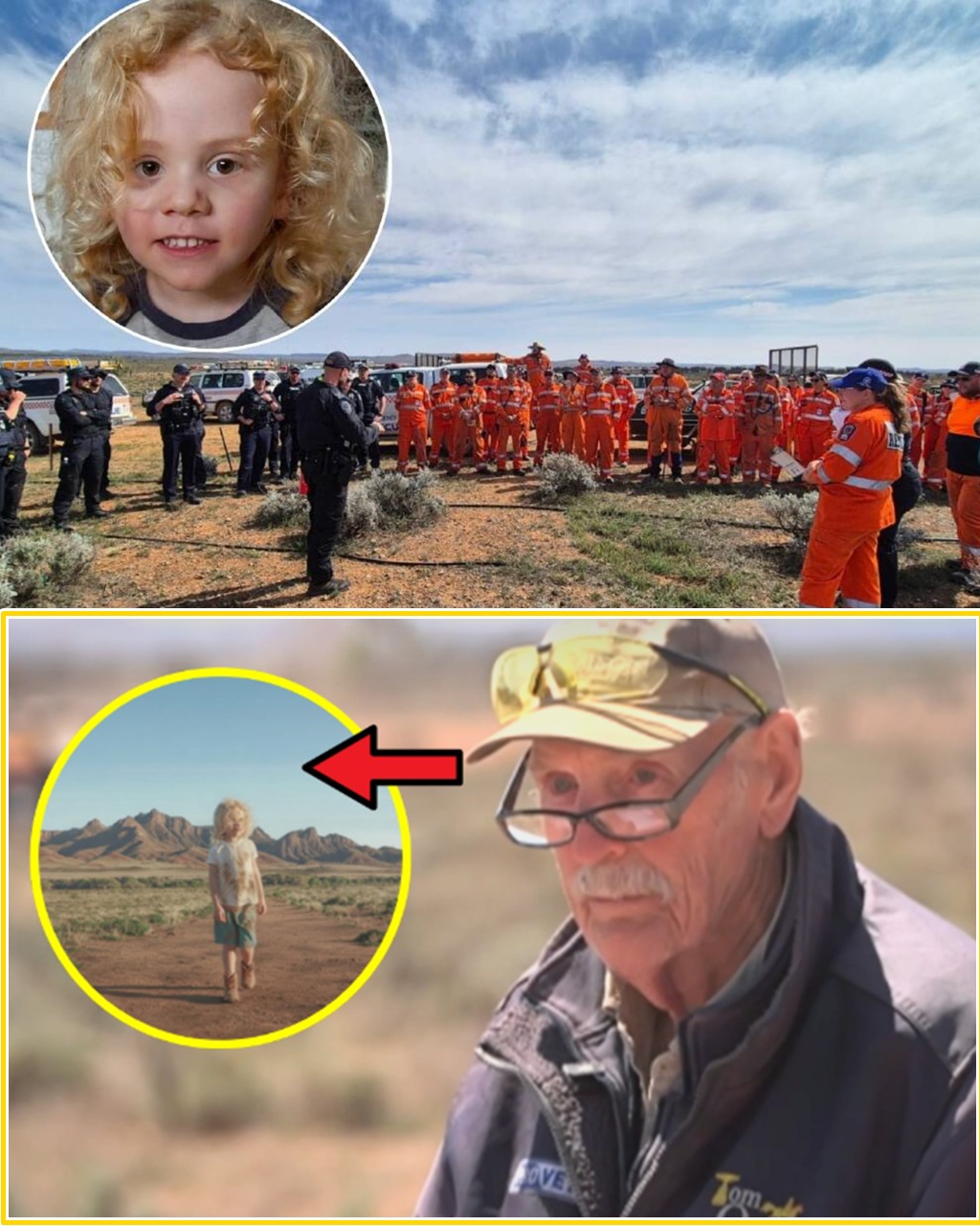 For days, the story seemed tragically simple — a loving family, a quiet property, and a brief moment when Gus wandered off and never came back. Police, volunteers, and the local community searched tirelessly through the dry scrub and open plains, desperate for a clue.