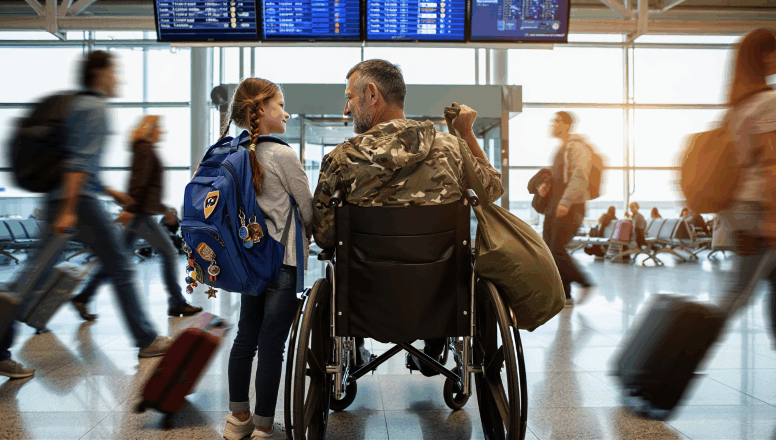 A man in a wheelchair, one sleeve of his jacket neatly folded and pinned up, struggled through the crowd. His military duffel bag kept slipping from his lap. The attendant who had been pushing him had disappeared. His face was tired and lost. Sophie paused. She looked at him again, then heard the gate agent’s voice announce the final boarding call for Flight 218. She glanced once more at the man — the quiet frustration in his eyes, the faded SEAL trident on his cap.