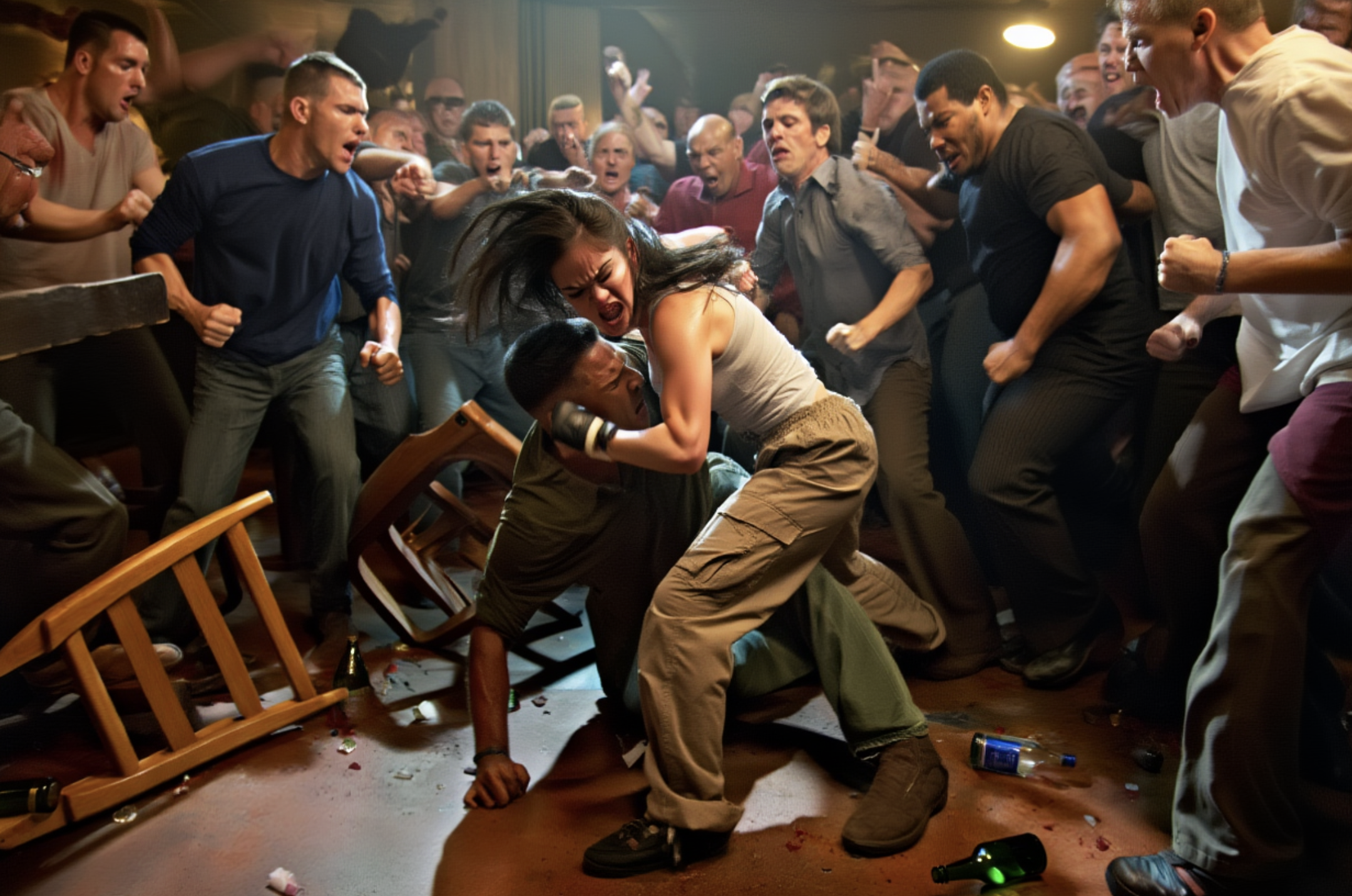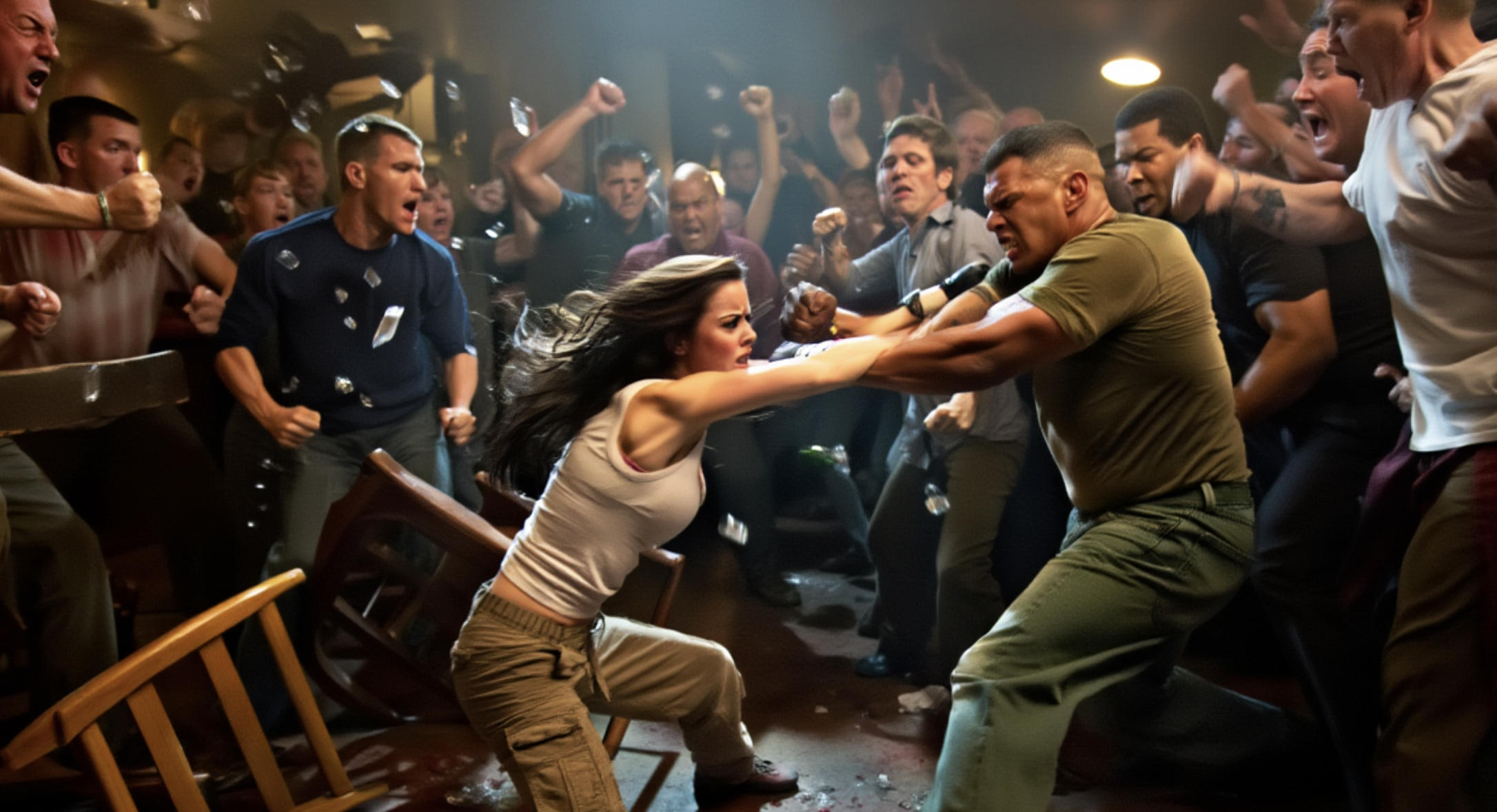 In that single second, Lena wasn’t in Harper’s Bar. She was back in a dark alley overseas — the clang of metal, the grinding of boots, the flash of an enemy rifle. Muscles she rarely let wake twitched alive beneath her skin.