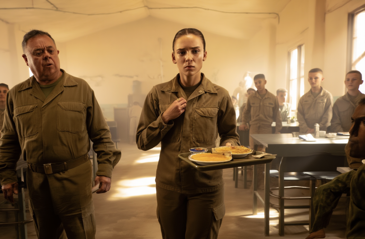 Sarah adjusted her uniform, picked up her tray, and walked past him. Each step struck the concrete like a drumbeat of authority, echoing through the mess hall long after she disappeared from sight.