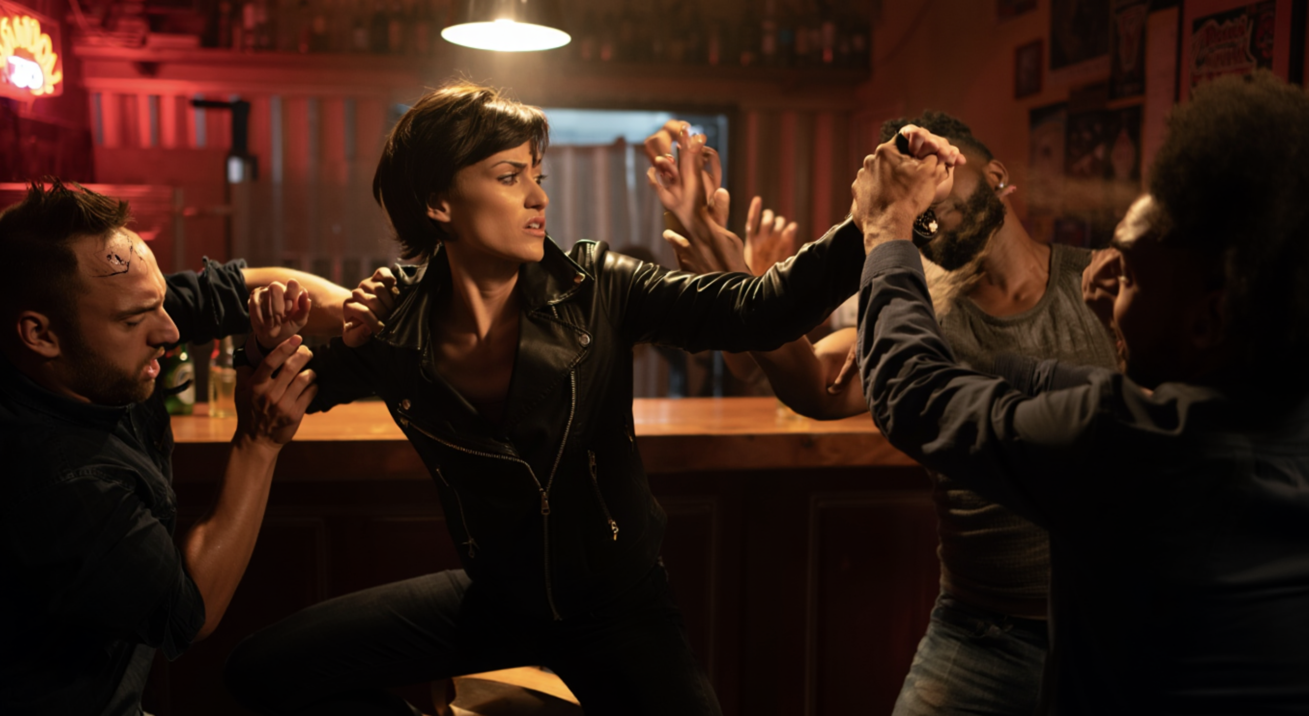 Maya took another step toward the door. Each movement was measured, rehearsed, like lines in a well-known script. The floorboards creaked under her boots as the men flanked her—two on either side, one behind with the knife, the leader slightly ahead.
