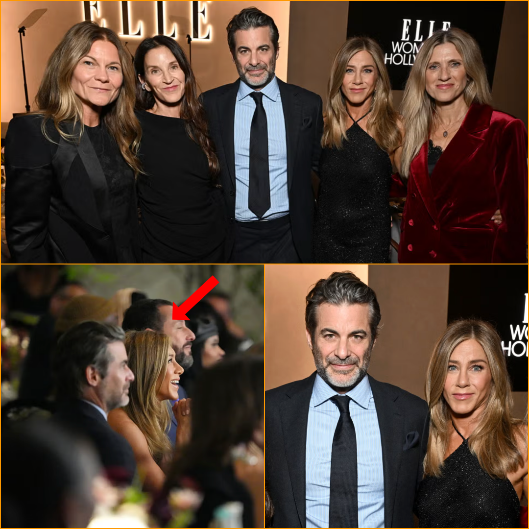 The couple was also photographed sitting together during the ceremony, next to Aniston’s longtime friend and former co-star Adam Sandler.