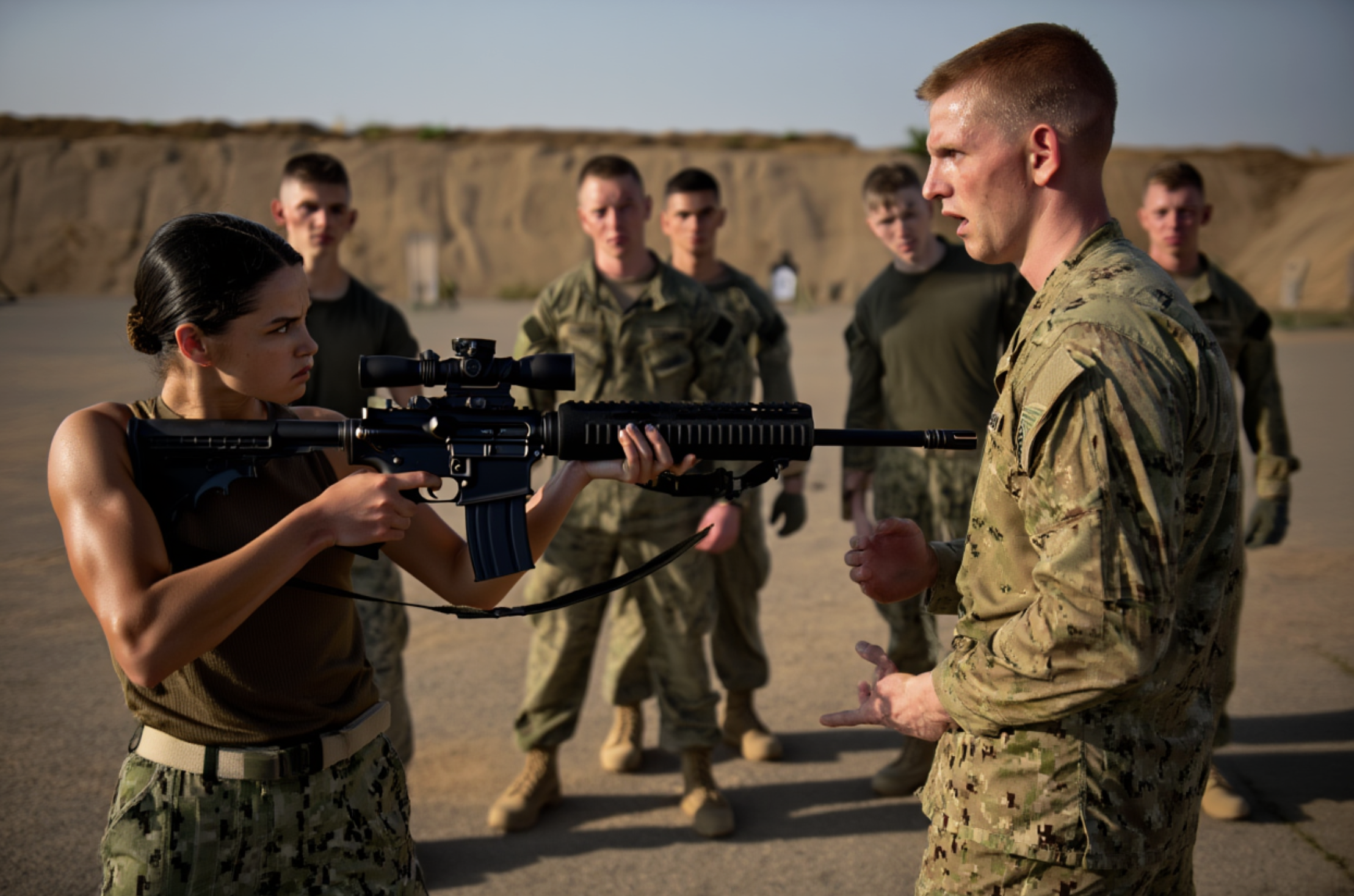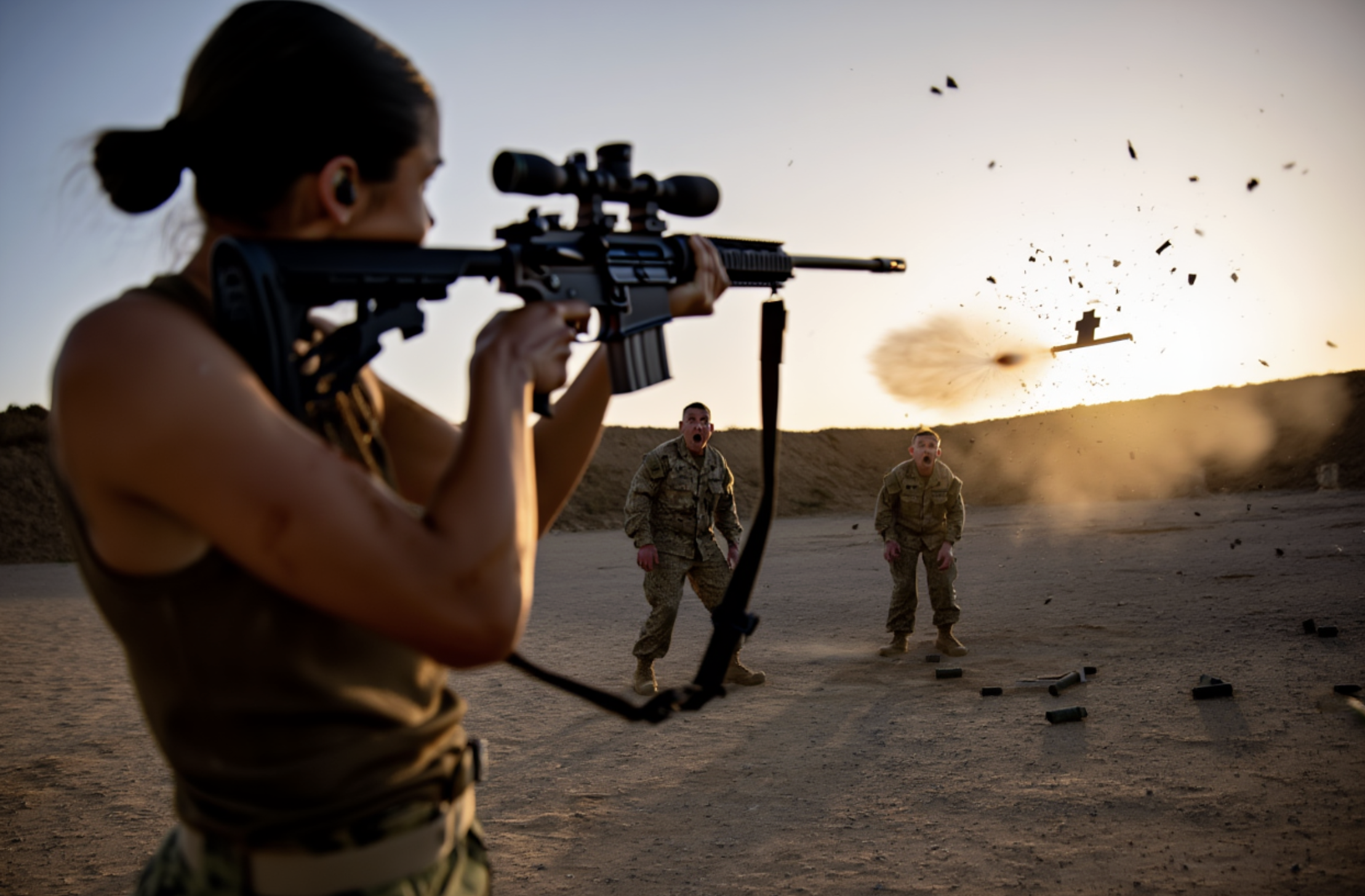At only twenty-two, she carried herself with quiet steadiness—someone who had spent enough time around rifles to respect them, yet still underestimated by the elite who trained here. Her job was simple: teach marksmanship basics to the rotating waves of recruits. Fundamentals, safety, consistency.