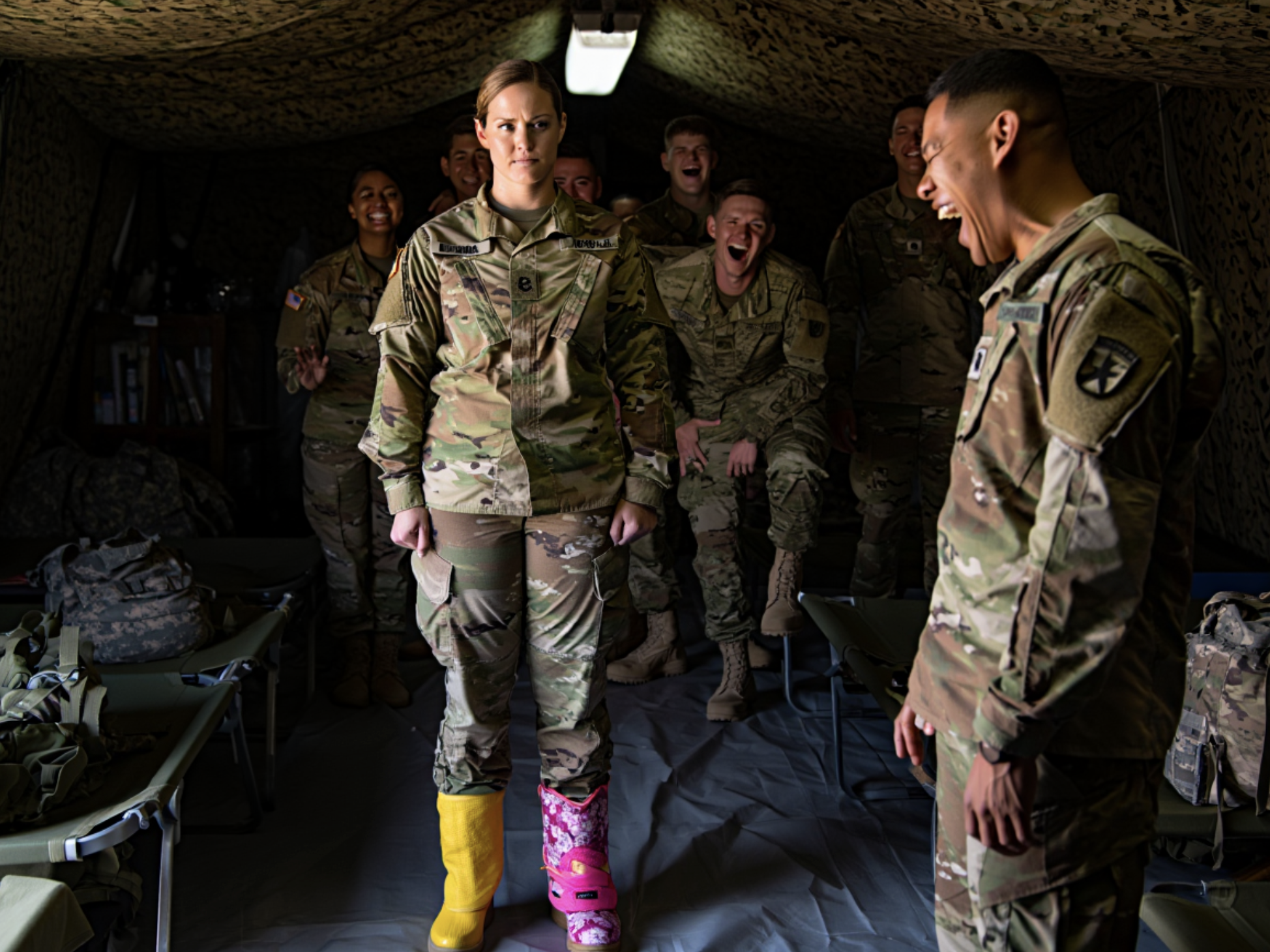 The exercise concluded, and recruits filed out of the yard, exhausted but inspired. The young soldier remained for a moment, letting the weight of the day settle. Her boots bore the scuffs of hard work, but they were steady, symbolic of her resolve, and proof that respect was earned—not demanded.