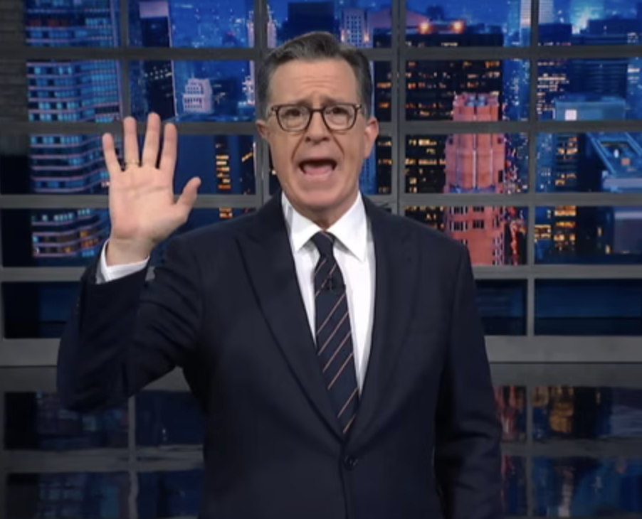 As the applause faded, Colbert’s expression softened, delivering a more serious message: