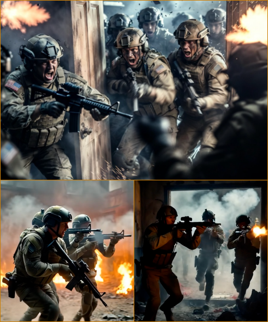 Two SEALs moved like machines—one firing, the other advancing. Their rifles barked in short bursts as they cleared the corridor step by step.