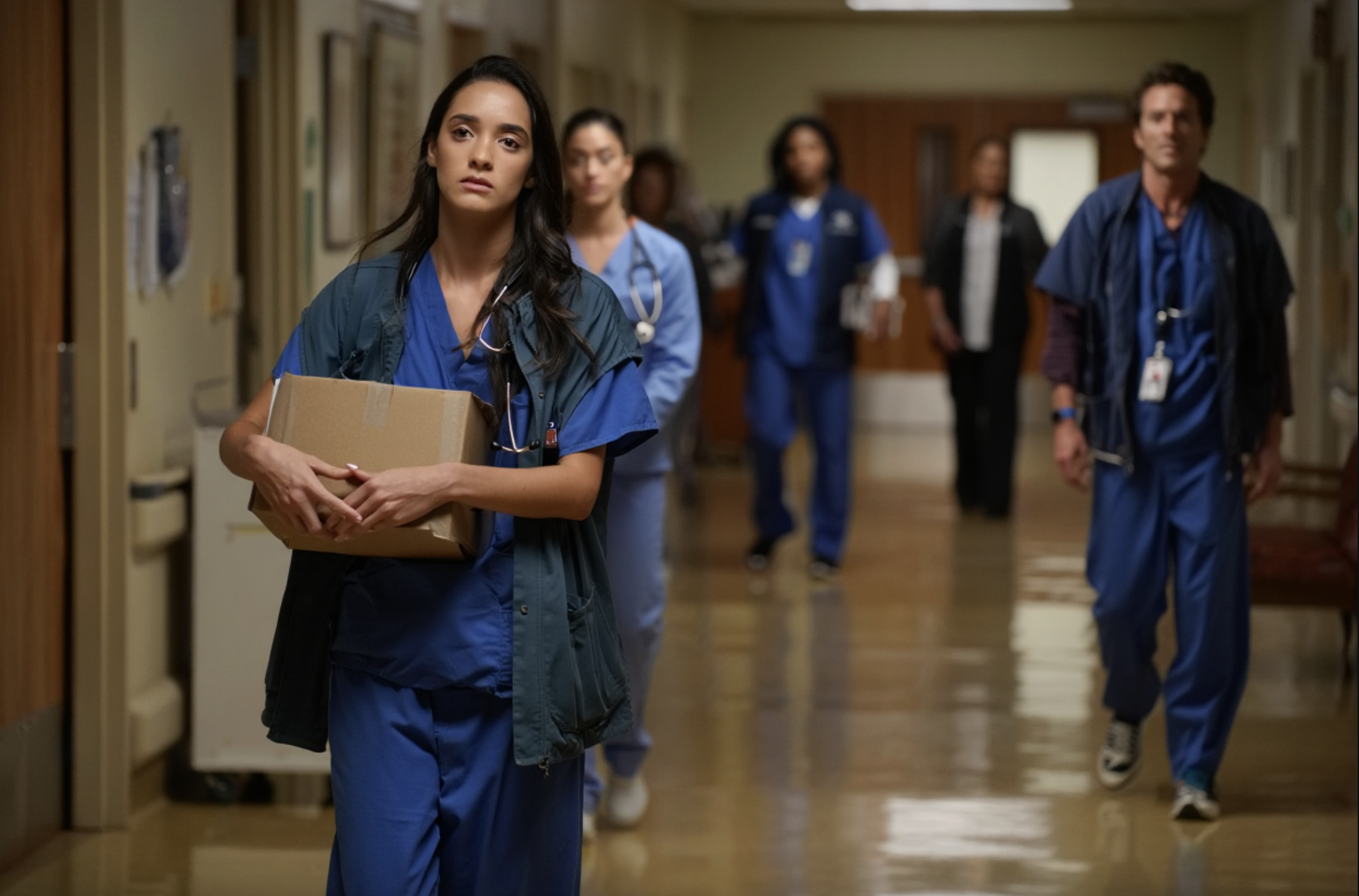 Juliet stepped out into the parking lot, the cold air biting through her thin scrubs. In her hands was a small cardboard box, the detritus of ten years — a few photos, a couple of letters, a medal she had never been allowed to claim publicly. Her life outside the hospital awaited, quiet, predictable, and safe.