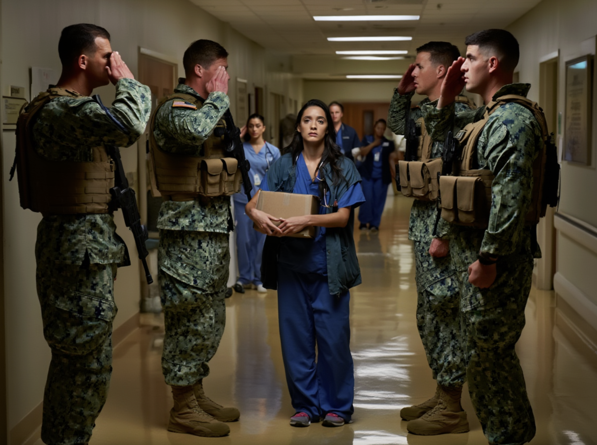 Juliet removed the pen from behind her ear, the one she had used to chart every vitals reading, every wound cleaned, every whispered confession from soldiers too ashamed to say it aloud. Her badge felt heavier in her hand than it had in years. This final shift had been simple in appearance: a few patients, some paperwork, the routine of life-saving gestures. Yet, in every movement, there was a strange mixture of relief and regret.