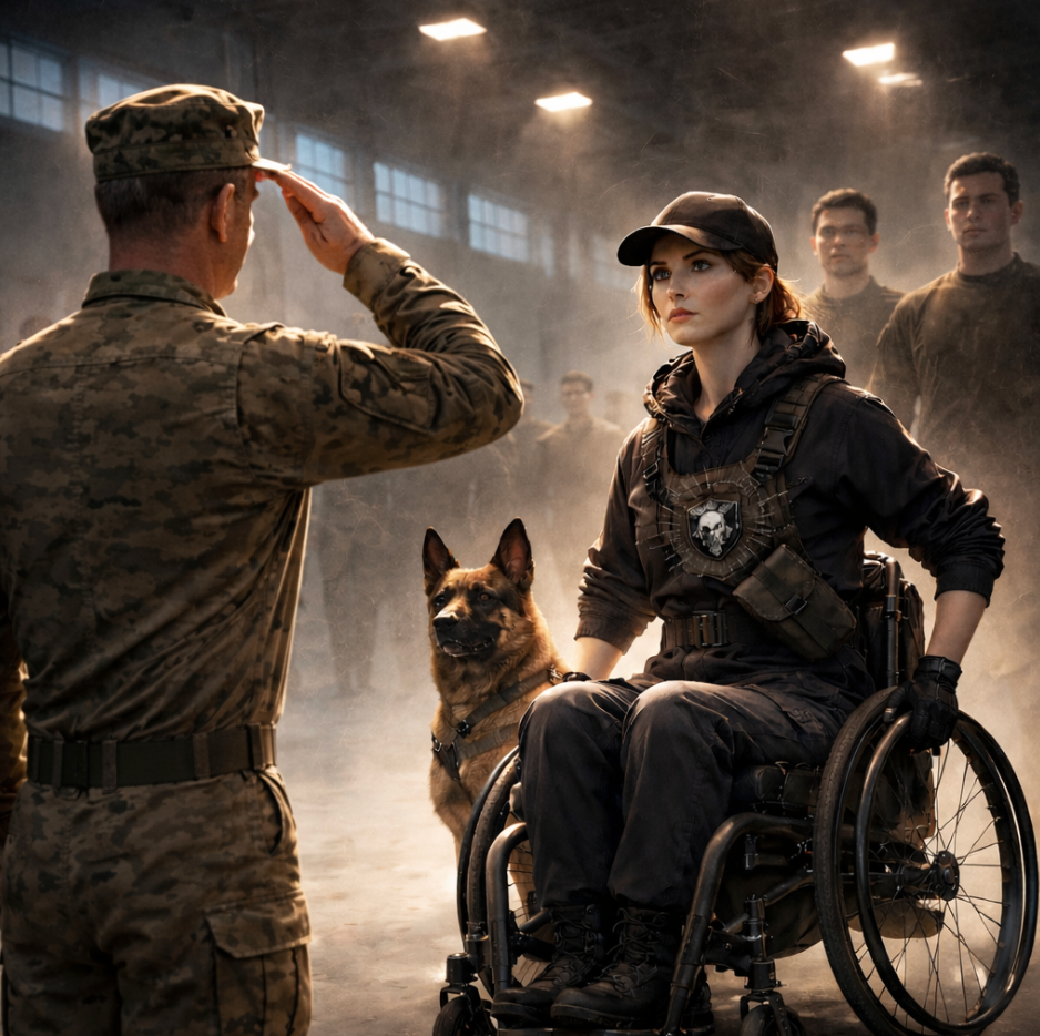 The tallest private nudged my chair an inch backward with the handles. That tiny movement sent a hot spark through my spine and lit something older under it—sand in my teeth, smoke in my lungs, hands dragging me where my legs no longer could.