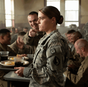 The mess hall buzzed with the clatter of metal trays and the rhythm of boots on concrete.