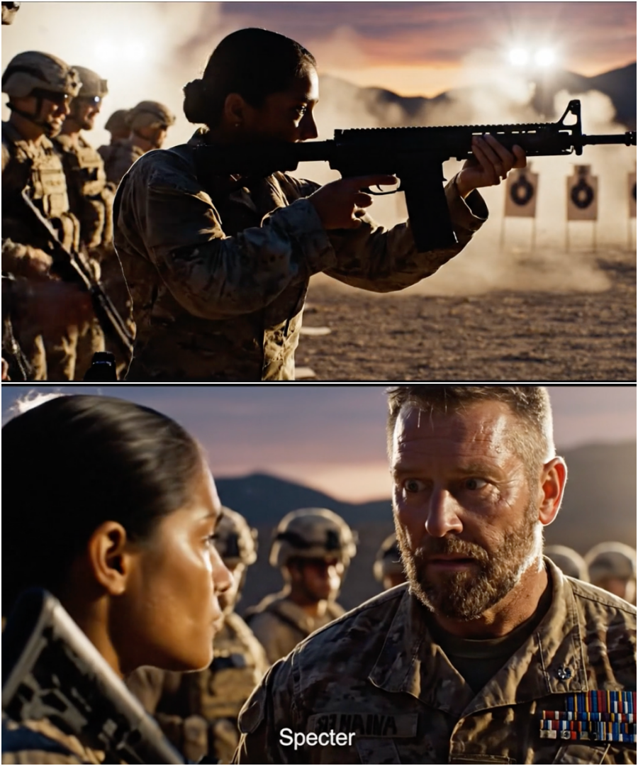 Night dropped over the Nevada training range like a lid. Floodlights turned the sand into pale glass, and the air carried that dry, metallic taste that always came before gunfire—oil, dust, and heat that never fully left the ground. Boots scuffed along the firing line. Magazines clicked into wells. Somebody laughed too loud to prove they weren’t tense.
