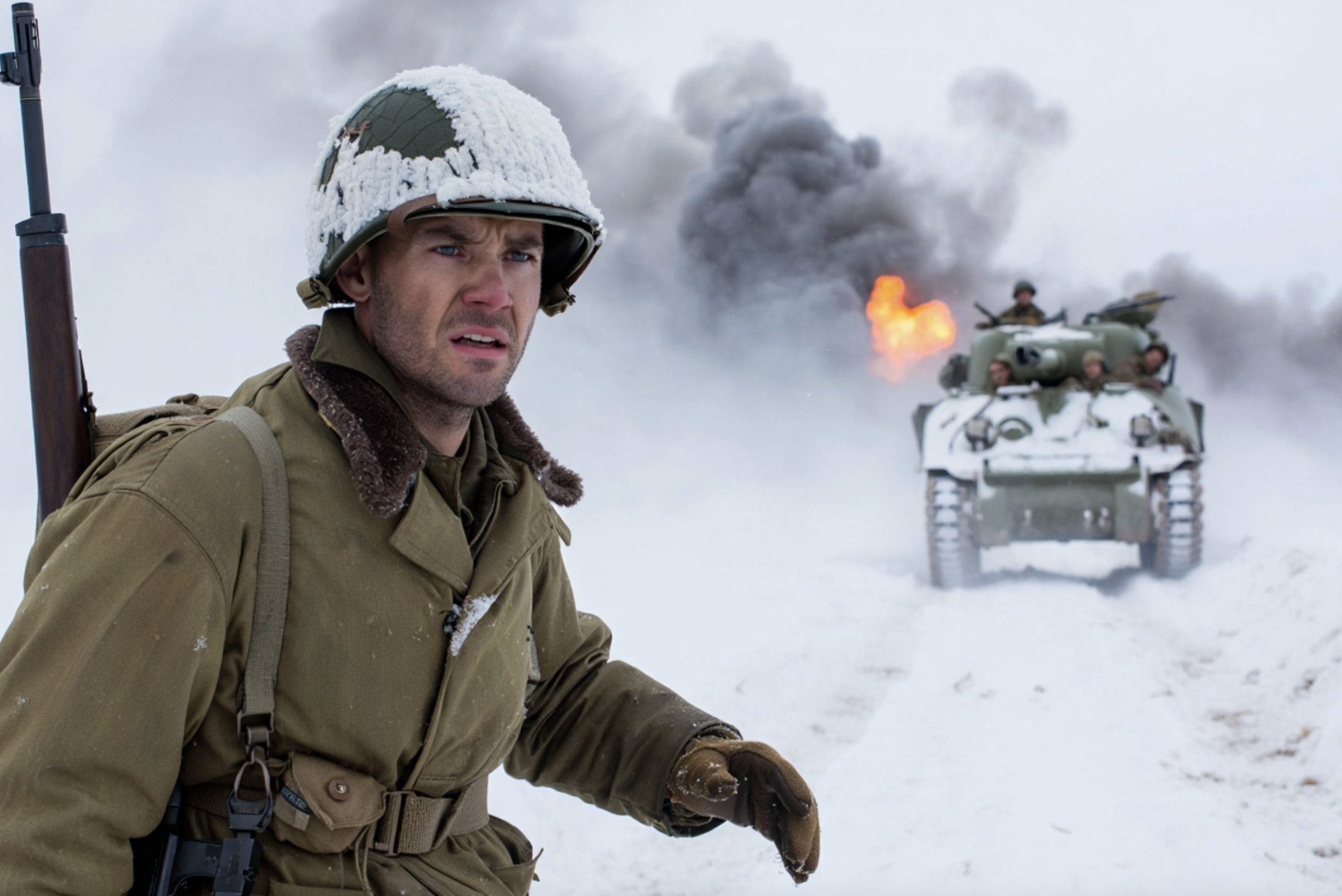 As the tanks moved, Thomas kept firing at the Germans. Running out of bullets, he hurled grenades, destroying obstacles, taking down any enemy in the way. Before him, the scene was chaos: snow turned red with blood, the acrid smell of gunpowder, enemy screams, and the roar of engines all blended into a deadly symphony of survival.