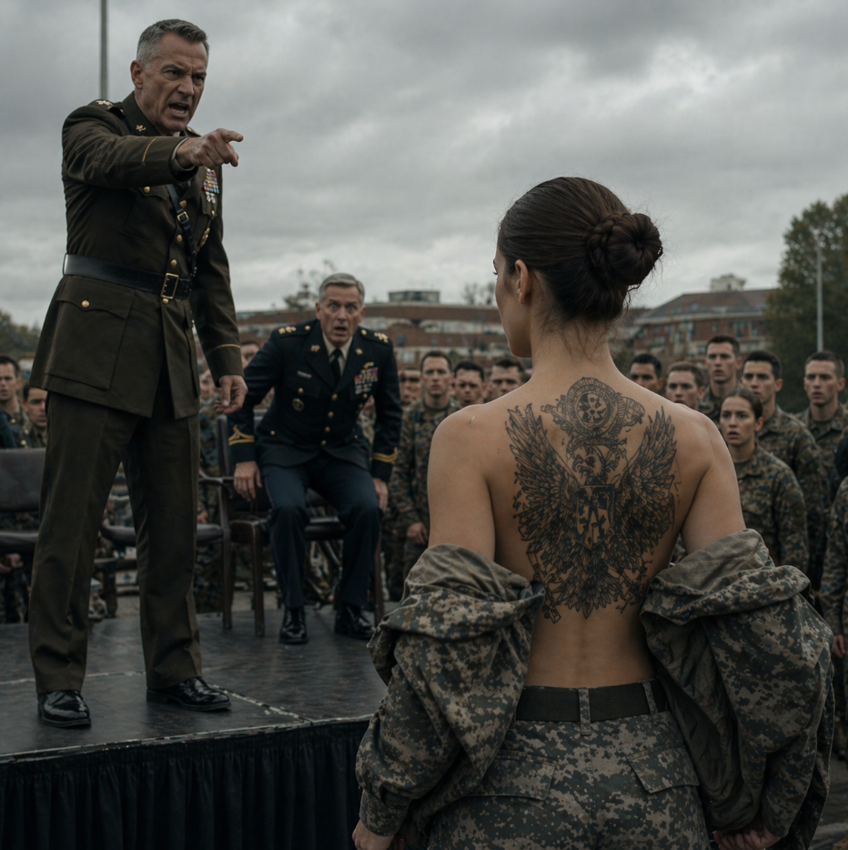 It covered my upper back in clean, precise lines—inked in black and faded desert tones. Insignia most recruits wouldn’t recognize.